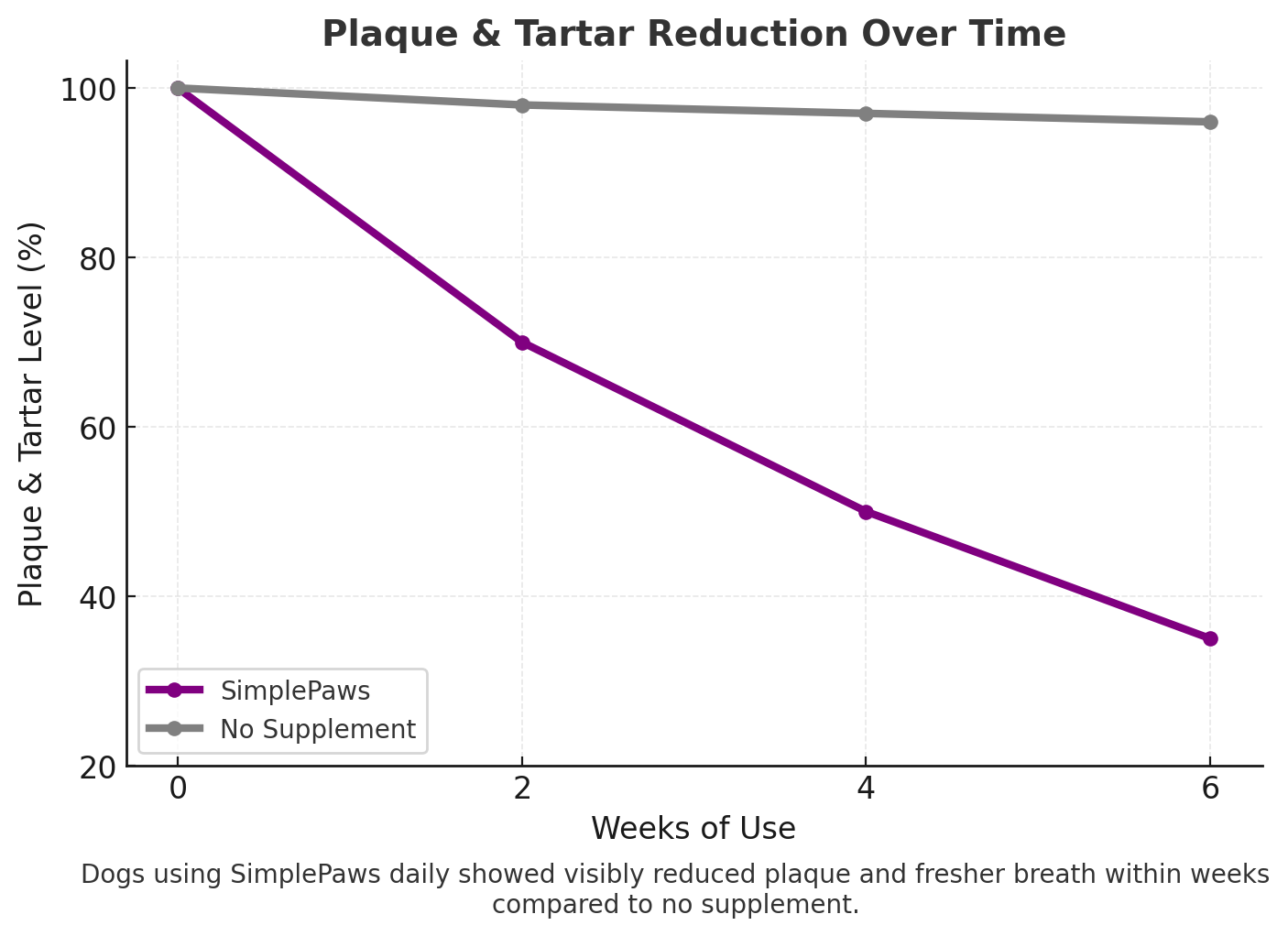 Most pet parents notice fresher breath within 1–2 weeks. With daily use, you’ll see cleaner teeth and reduced plaque and tartar over time.